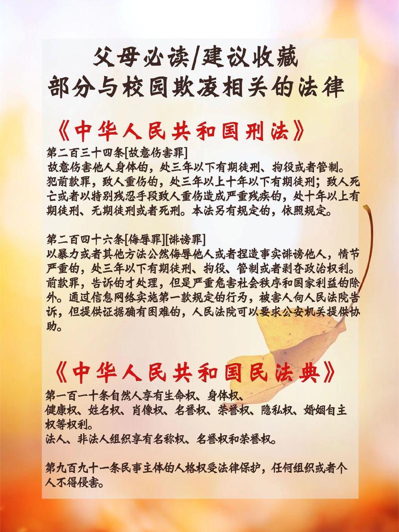 下面我将从民事责任、行政责任、刑事责任三个层面,并结合具体的法律条文,为您详细解析校园欺凌触犯的法律。