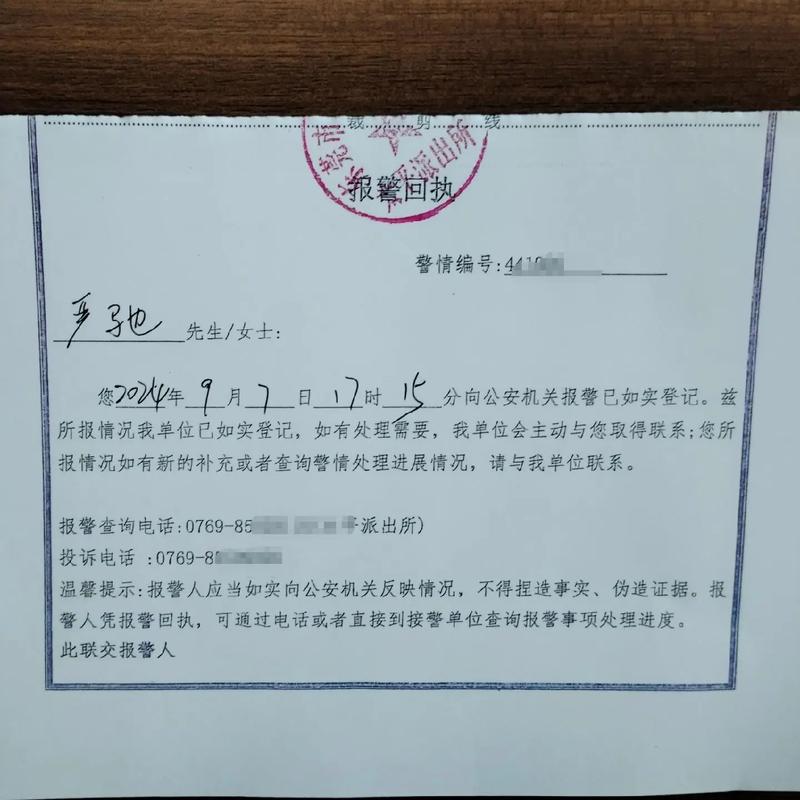 - 索要回执: 务必要求警方出具《受案回执》或《立案通知书》,这是您已经报案的正式凭证,非常重要。