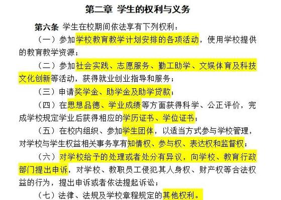 - 义务:遵守法律法规、校规校纪,努力学习,完成规定的学业。