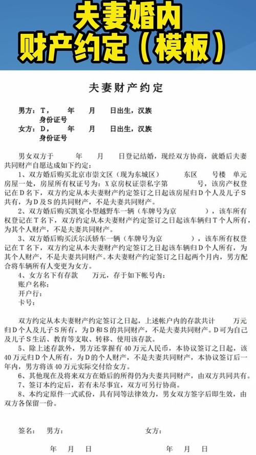 夫妻财产约定协议具法律效力吗? 夫妻财产约定协议具有法律效力,只要这份协议是合法有效的,它就可以在夫妻之间以及对外关系中产生法律约束力,其效力甚至可以高于《民法典》中关于法定财产制的规定,下面我将从几个方面详细解释这个问题:法律依据是什么?《中华人民共和国民法典》是夫妻财产约定协议最直接的法律依据,第一千零六十五条 【夫妻约定财产...