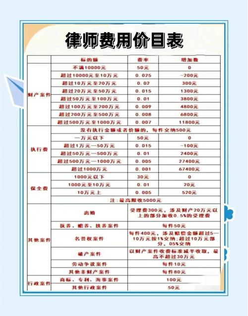 山西基层法律服务所收费标准是多少? 以下信息为该文件规定的基准标准,根据实际情况,允许在±20%的浮动幅度内协商确定最终价格,且最终价格需向当地物价部门和司法行政部门备案,以下是该文件中规定的主要收费项目及标准:担任公民请求支付劳动报酬、工伤赔偿,请求给付赡养费、抚养费、扶养费,请求发给抚恤金、救济金,请求给予社会保险待遇或最低生活保...