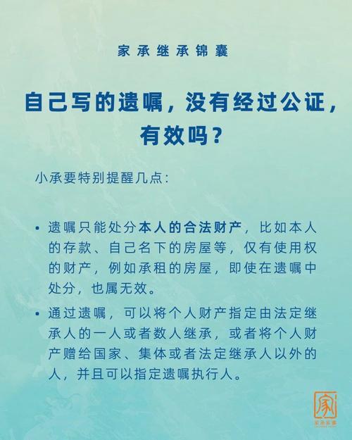 老人自书遗嘱未公证,有效吗? 这是一个非常常见且重要的问题,答案是:有法律效力,但有严格的前提条件,我们来详细解释一下,老人立遗嘱,即使没有经过公证,只要该遗嘱符合法律规定的形式要件和实质要件,就是合法有效的,具有法律约束力,为什么有效?法律依据根据中国《民法典》的规定,遗嘱有几种形式,其中“自书遗嘱”和“代书遗嘱”等都不强制要...