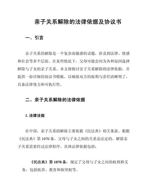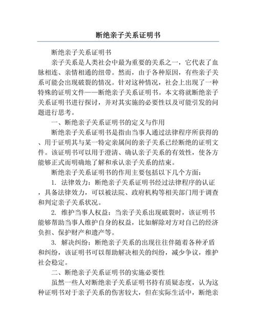 断绝父子关系协议有法律效力吗? 这是一个非常常见且重要的问题,简单直接的答案是:在中国大陆的法律框架下,亲生父子关系不能通过“断绝关系”的方式解除,因此这种所谓的“断绝关系”在法律上是无效的,下面我将从法律依据、特殊情况、实际影响等多个角度为您详细解释,为什么“断绝父子关系”在法律上无效?这主要基于以下几个核心法律原则:血缘关系的...