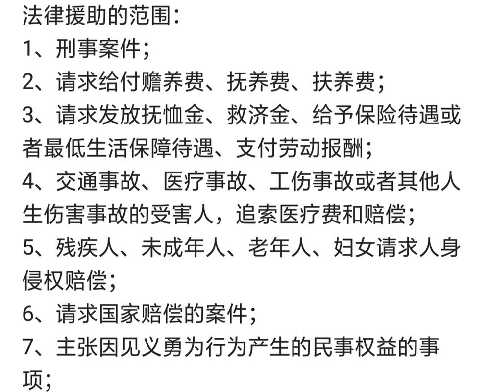 法律援助范围具体包括哪些内容? 根据《中华人民共和国法律援助法》的规定,法律援助的范围主要包括以下两大类:刑事辩护与代理和民事、行政案件代理, 刑事辩护与代理这是法律援助覆盖最广、最核心的领域之一,(一)应当通知辩护的情形(法定强制援助)对于以下犯罪嫌疑人、被告人,如果没有委托辩护人,人民法院、人民检察院、公安机关**应当**(必...