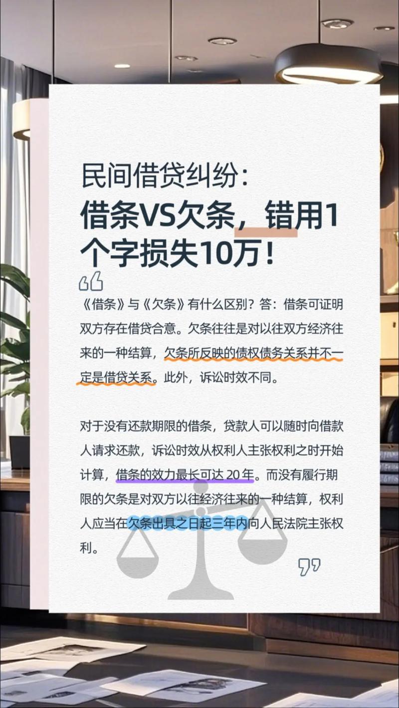 借条欠条法律区别大吗? 借条主要是“借款”关系,而欠条的范围更广,是“欠款”关系,下面我将从多个维度为您详细解析二者的法律区别,核心定义与法律关系区别点借条欠条核心定义借款合同的凭证,是证明双方当事人之间存在借贷关系的书面文件,债权债务关系的凭证,是证明一方当事人因某种原因(不限于借贷)欠付另一方款项的书面文件,法律关系基...