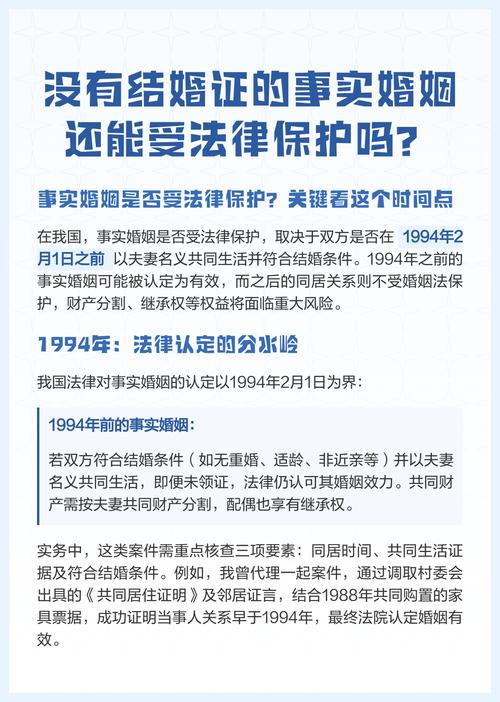 事实夫妻是否受法律保护? 这是一个非常重要且常见的问题,“事实夫妻”在法律上通常不被承认为夫妻关系,因此不直接受《民法典》中“夫妻”相关条款的保护,这并不意味着他们的所有权益都不受法律保护,法律会根据具体情况,通过其他途径来保护他们的合法权益,下面我将从几个方面详细解释:为什么“事实夫妻”不受《民法典》的直接保护?中国的法律...