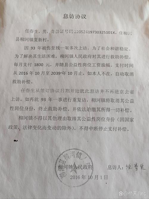 息访协议到底有没有法律效力? 息访协议本身具有法律效力,但其效力范围是有限的,并且受到严格的限制,下面我将从几个方面详细解释: 什么是息访协议?息访协议,通常是指信访人(上访者)与信访工作责任单位(如政府部门、信访局等)之间,为解决信访问题、终结信访程序而签订的一种书面协议,协议内容通常包括:事实确认:对信访人反映的问题进行事实...