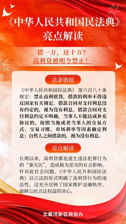 网络高利贷法律规定具体有哪些? 中国法律对高利贷是明确禁止和严厉打击的,网络高利贷除了具备传统高利贷的危害外,还利用互联网的隐蔽性、传播性等特点,带来了更多社会问题,因此成为了国家重点整治的对象,其法律规定的核心可以概括为以下几点:利率上限: 受法律保护的年利率上限为 8%(LPR的4倍),超高利率: 年利率超过14.8%的部分,...