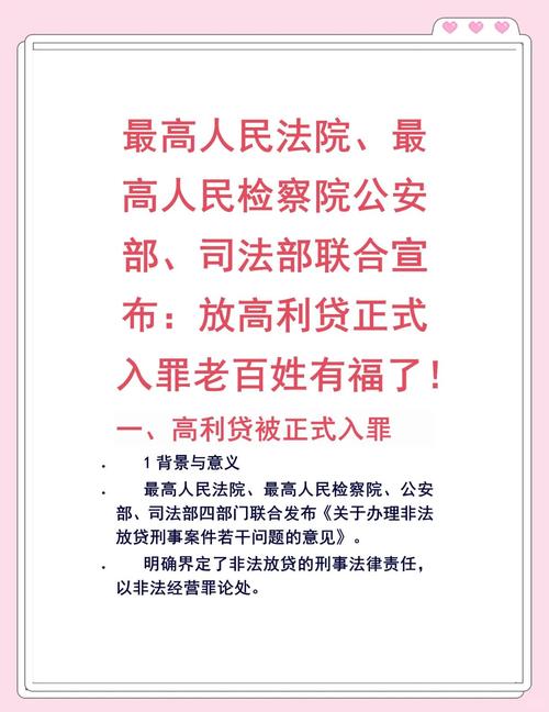 高利贷法律红线如何界定? 中国法律不保护高利贷,并对高利贷行为进行了严格规制,核心的法律文件是最高人民法院发布的《关于审理民间借贷案件适用法律若干问题的规定》(以下简称《规定》),以及《中华人民共和国刑法》中的相关规定,以下是核心要点,我将分层次为您解释: 核心标准:利率红线(LPR的4倍)这是判断是否构成高利贷最关键、最核...