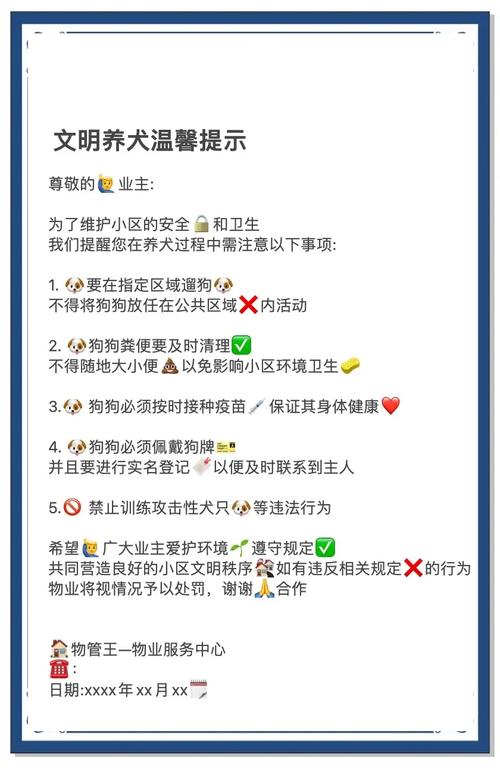 小区养狗,法律到底允不允许? 这是一个非常好的问题,也是很多业主关心的话题,关于小区是否可以养狗,答案并不是简单的“是”或“否”,而是一个综合性的法律和规定问题,法律上没有一刀切地禁止在小区养狗,但养狗行为必须受到严格的约束和管理, 小区养狗的权利,是以不侵犯其他业主的合法权益为前提的,下面我将从几个层面为您详细解释: 国家层面...