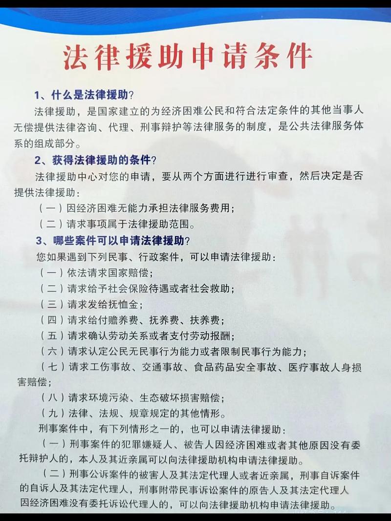 - 覆盖基本权利:确保了经济困难的公民在面临刑事指控、追索劳动报酬、请求国家赔偿等基本法律问题时,不会因为没钱而无法获得辩护或代理,是维护司法公平的重要一环。