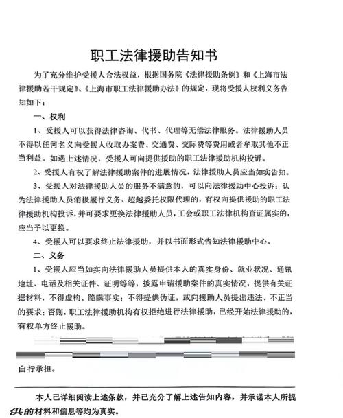 - 工会援助:如果您是工会会员,也可以向所在地的工会法律援助中心寻求帮助,工会也提供免费的法律咨询服务。