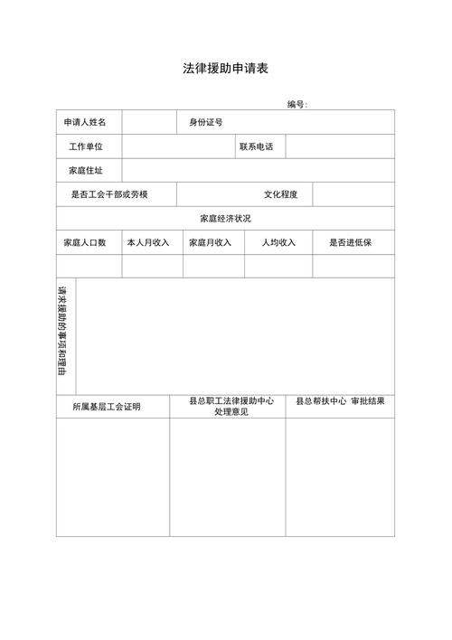 - 《法律援助申请表》:可以在法律援助中心领取填写,或在其官网下载打印填写。