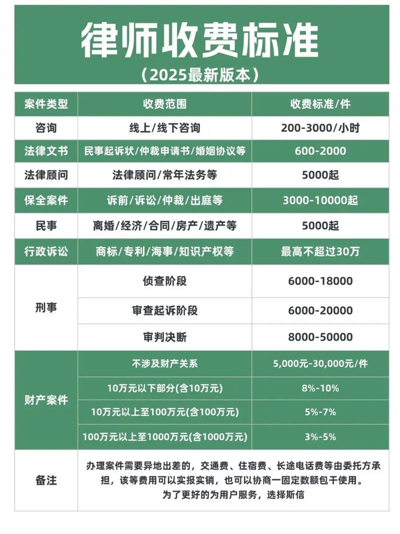 - 政府指导价:适用于关系民生的特定案件,如婚姻、继承、劳动、工伤、交通事故、物业等,律师费有政府规定的基准价和浮动幅度。