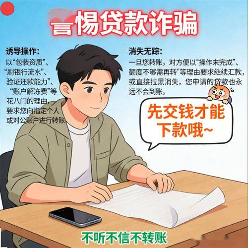- 任何在放款前以任何名义(保证金、解冻费、刷流水、工本费)要求您先交钱的,100%是诈骗。