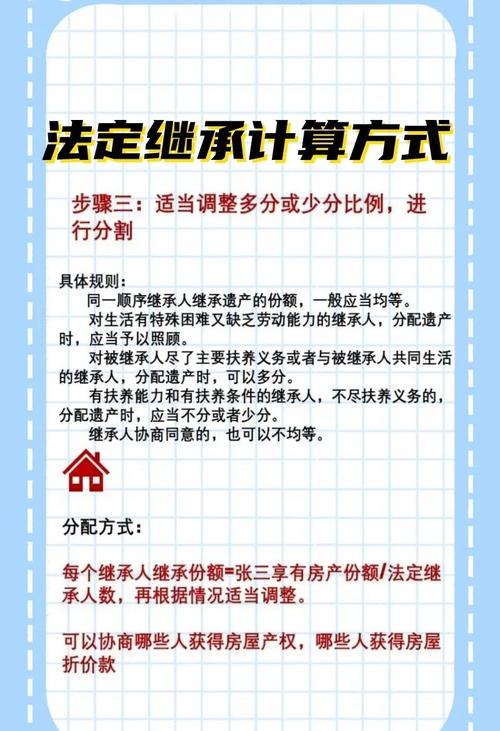 - 子女:包括婚生、非婚生、养子女、有扶养关系的继子女。 - 父母:包括生父母、养父母、有扶养关系的继父母。 - 继承原则:一般均等,可协商或根据扶养情况调整。 |