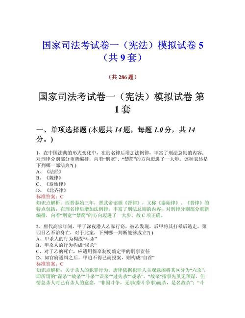 - 主观题考试:题型为案例分析、论述等,侧重考察考生运用法律知识分析解决实际问题的能力,通常聚焦于刑法、民法、行政法、三大诉讼法等核心科目。