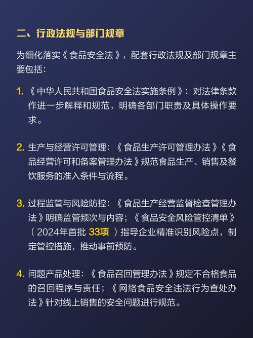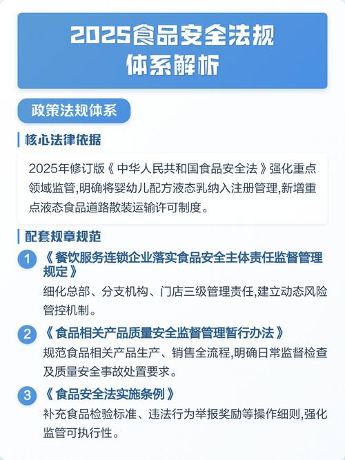 中国的食品安全法律体系是一个动态发展、不断完善的系统,它以《食品安全法》为核心,通过多层级法律规范和标准,确立了“预防为主、风险管理、全程控制、社会共治”的现代监管理念,并构建了从农田到餐桌的全链条监管模式,近年来,随着电子商务、预制菜等新业态的出现,相关法律法规也在不断更新和细化,以应对新的挑战,最终目标是最大程度地保障人民群众的饮食安全。