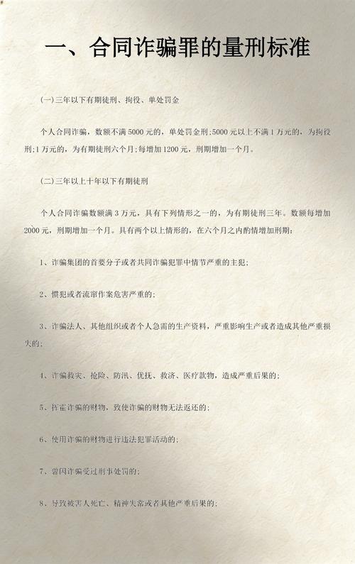 - 严惩“套路贷”型合同诈骗:近年来,司法机关高度关注以“套路贷”为名实施的合同诈骗犯罪,这类犯罪通常披着民间借贷、房屋买卖、汽车租赁等合法外衣,通过制造虚假流水、肆意认定违约、转单平账等手段,非法占有被害人财产,对于此类犯罪,司法机关会从严惩处,通常直接适用“数额巨大”或“数额特别巨大”的档次,并从重考虑其恶劣的社会危害性。