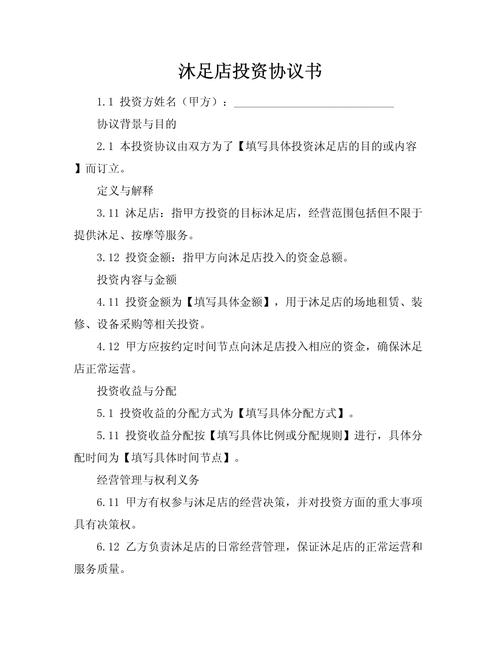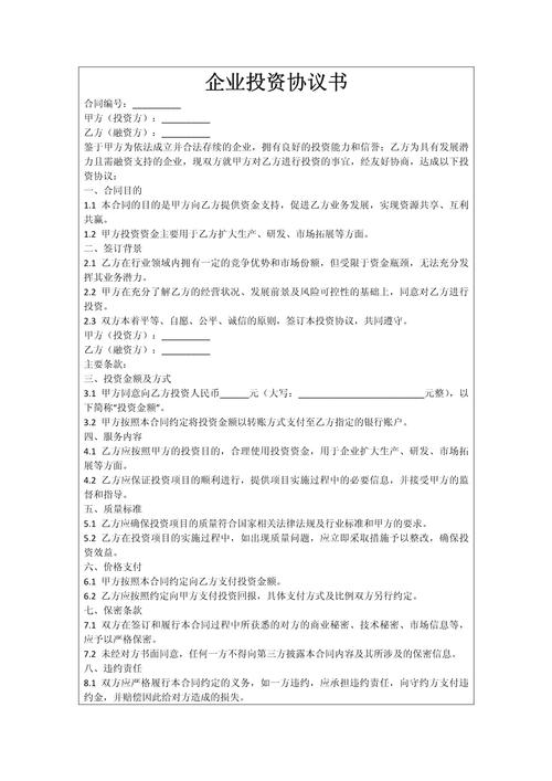 下面我将为您提供一个全面、结构化的指南,包括投资协议的核心要素、关键条款解析、一份简易模板以及重要注意事项。