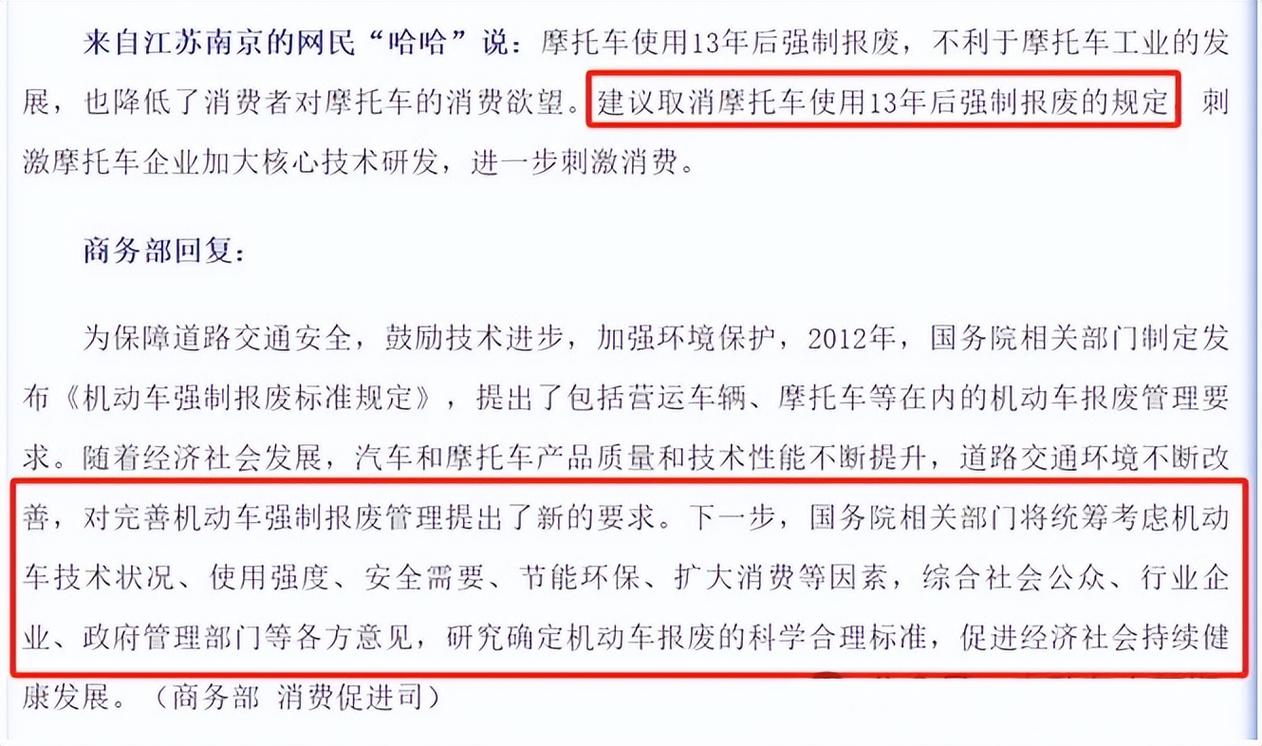 - 其他摩托车:使用年限 13年。