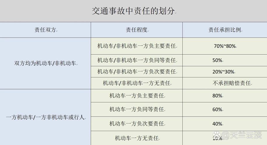 - 主要责任:一方的过错是导致事故发生的主要原因,其行为对事故的发生起决定性作用。
