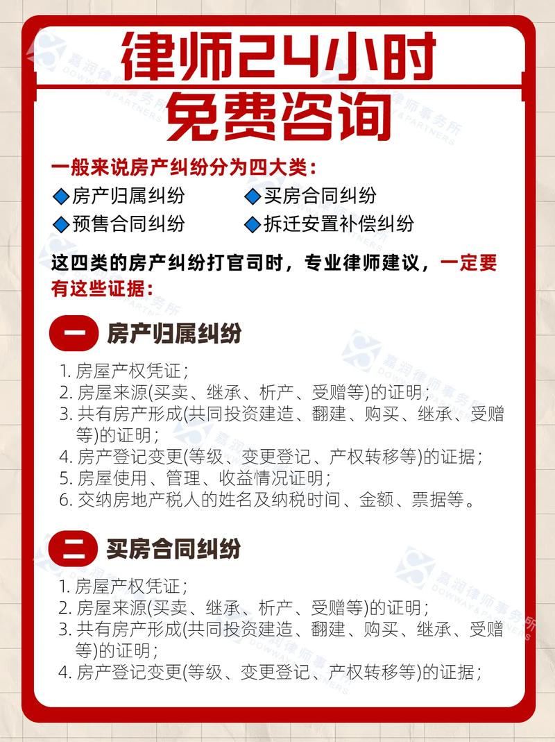 - 与开发商的房屋质量、面积误差、逾期交房等问题。