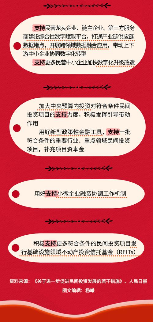 - 强化督查考核: 将鼓励民间投资的相关政策落实情况、民间投资增速和占比等指标,纳入地方政府绩效考核体系,压实地方责任。