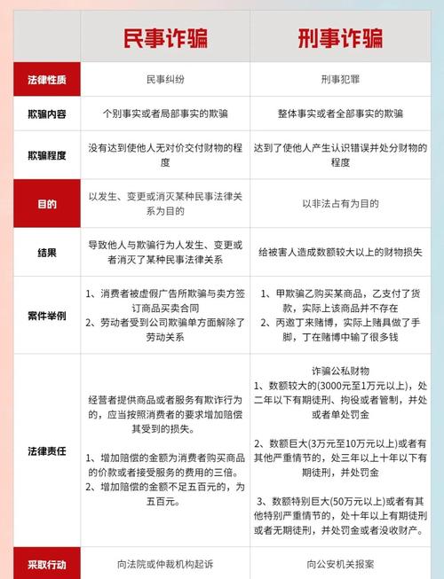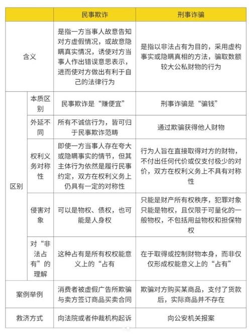(图片来源网络,侵删)- 主观上:必须具有“非法占有目的”,这是区分民法欺诈和刑法诈骗罪最核心、最关键的一点,所谓“非法占有目的”,是指行为人意图永久性地、不法地剥夺他人财物的所有权,而不是想暂时使用或通过合法途径获得,借钱时就没想还,或者签了合同就没想履行交货义务。