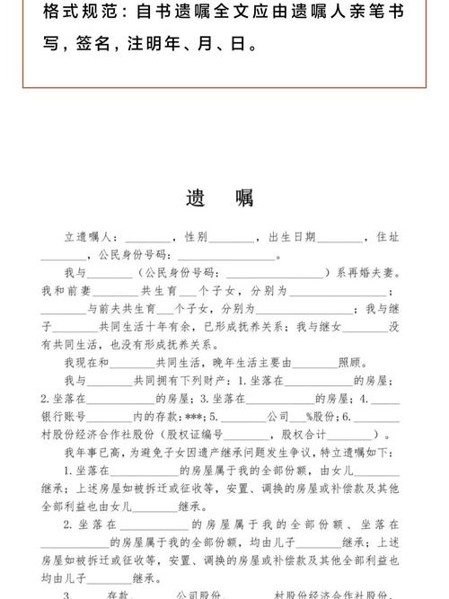 (图片来源网络,侵删)这是遗嘱生效时间的关键,也是判断多份遗嘱效力先后顺序的依据,日期必须完整、清晰,不能只写年份或只写月份。