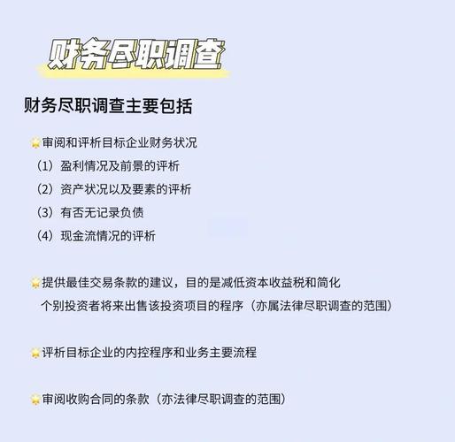 - 核心资产: 对于轻资产公司,核心资产可能是客户资源、特许经营权、许可协议等,需要调查其合法性和稳定性。