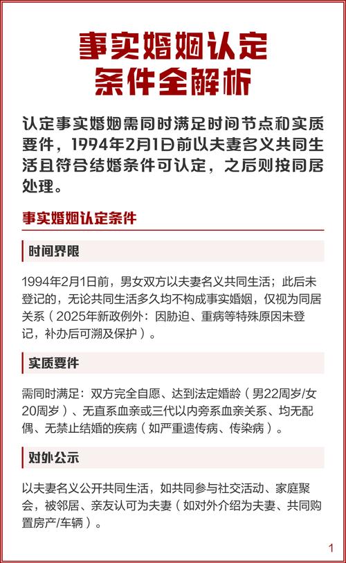 - 历史遗留问题:1994年2月1日这个时间点是处理历史遗留问题的界限,对于在此之后的情况,法律非常明确,不承认事实婚姻。