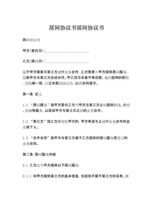 - 居间人:提供信息或撮合服务的一方,如房产中介、猎头公司等。