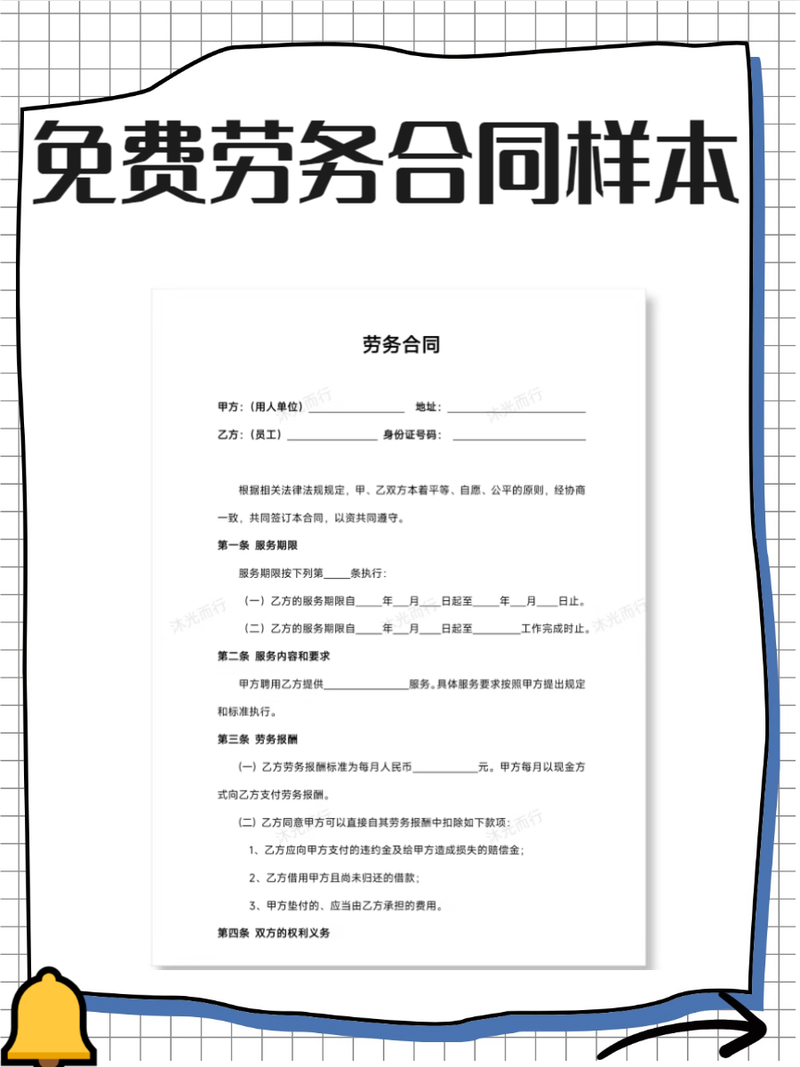 - 如果您只是想请人完成一个短期、临时的项目(如设计、咨询、维修),不希望对其进行严格管理,那么签订 《劳务合同》 更为合适,可以避免承担缴纳社保等用人成本和法律责任。