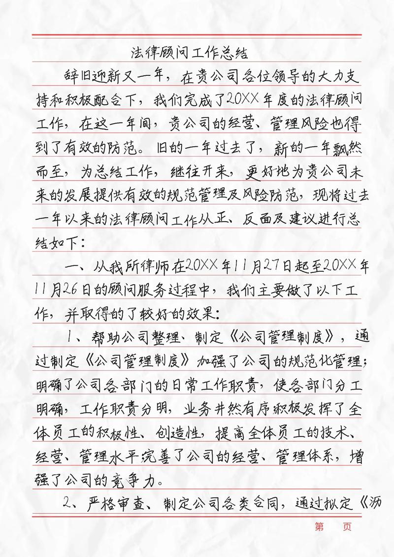 - 明确协议: 一定要签订书面的《法律顾问服务合同》,明确以下内容: