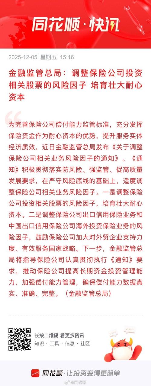- 鼓励长期资金入市:监管机构将保险资金视为稳定资本市场的重要“压舱石”,近年来,持续出台政策鼓励保险资金加大对优质上市公司、科技创新企业的长期投资,支持实体经济。