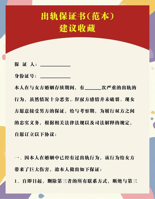 - 法律观点: 法院通常认为,夫妻间的忠诚义务是基于婚姻关系而产生的法定义务,不能通过一纸“保证书”来创设或加重,这种保证书更多地被视为一种道德承诺,而非具有法律约束力的合同。
