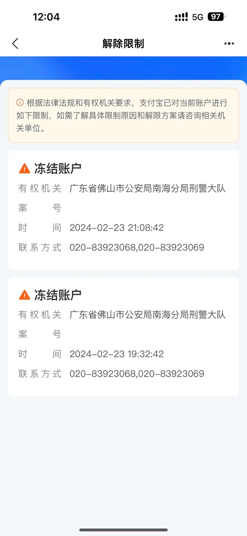 - 司法冻结:这是最严重的一种,通常由公安机关、法院等司法机构发起,通知会显示是哪个地方的公安局或法院冻结的,并附有案件编号和负责警官的联系方式。