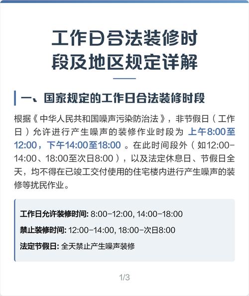 - 夜间时间:通常指晚上22:00(或21:00)至次日早上8:00(或9:00)之间,这个时间段是绝对的“安静时间”,严禁从事任何产生噪音的装修活动,包括但不限于电钻、切割、敲打、搬运等。