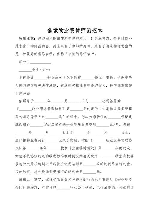 - 内容必须合法合规:律师函的内容必须基于事实和法律,不能包含威胁、恐吓、侮辱等违法言辞,否则,发函的物业公司(或其律师)反而可能承担侵权责任。