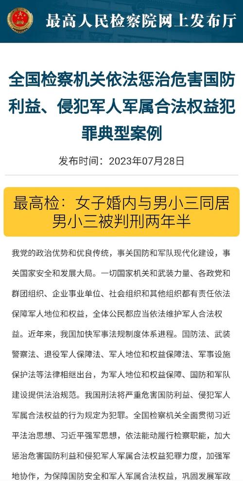 (图片来源网络,侵删)- 情景:明知对方是现役军人的配偶,而与之同居或者结婚。