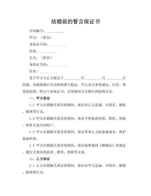 - 忠诚承诺:如“必须每天给对方发晚安消息”、“必须和异性保持距离”,这类承诺更多是道德层面的约束,很难通过法律强制执行,但如果一方违反了这些承诺,可以作为证明其“过错”的辅助证据,在离婚时对财产分割和损害赔偿产生一定影响。