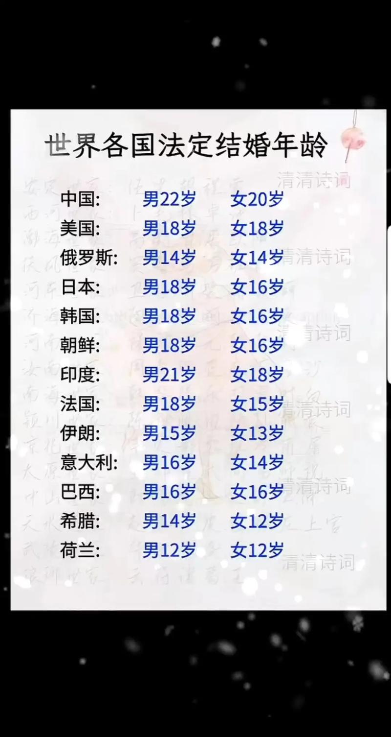 - 生理和心理成熟度:法律认为,男性和女性在这个年龄阶段,身体和心智基本发育成熟,能够具备承担婚姻家庭责任的能力。