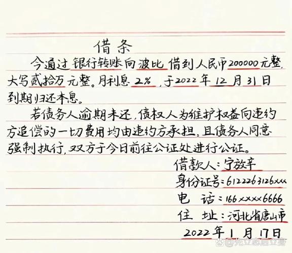 - 警惕“借条”变“欠条”:“欠条”可能因其他原因(如买卖、服务)产生,而“借条”直接证明借贷关系,如果基础法律关系不明确,用“借条”更稳妥。
