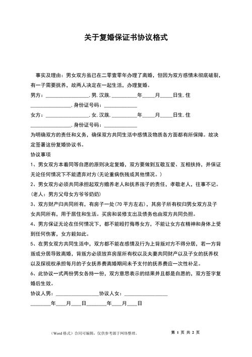 - 协议只能作为辅助: 如果你担心复婚后的财产问题或忠诚问题,可以在领取结婚证的同时或之后,签署一份《婚内财产协议》,这份协议在领证后才是真正具有法律效力的“夫妻财产约定”。