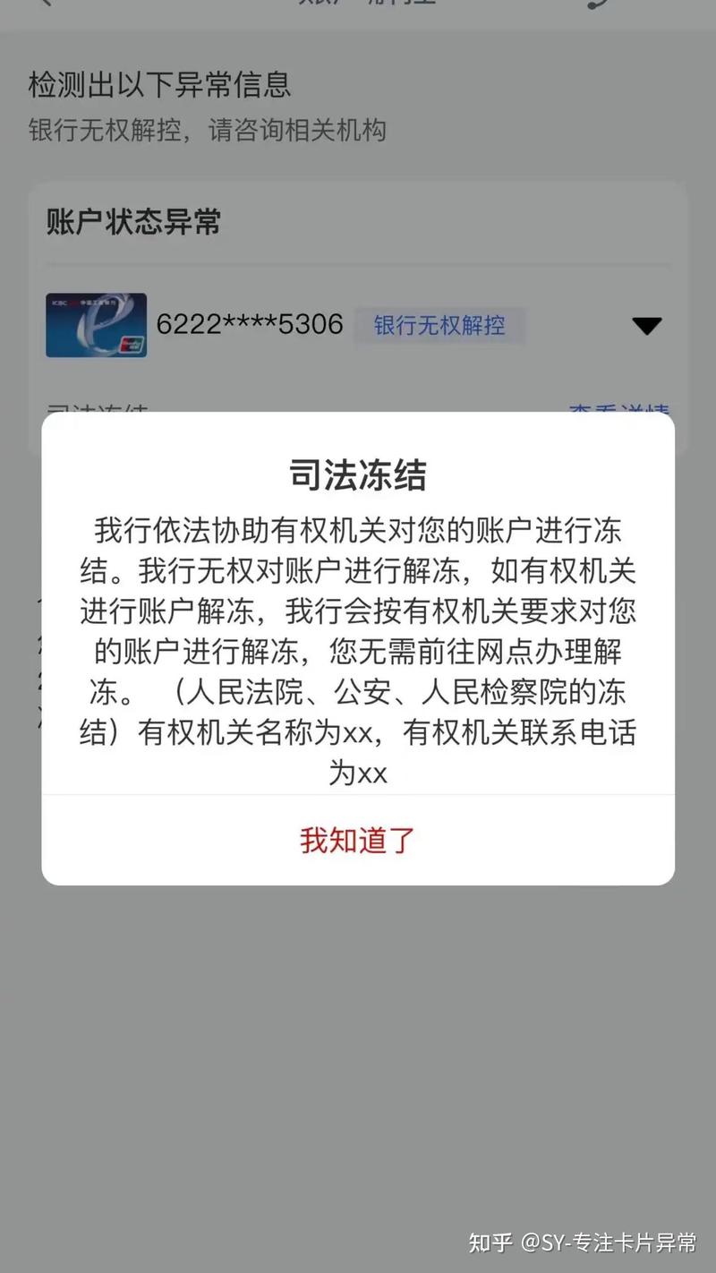 您必须弄清楚是哪个机构以及因为什么原因冻结了您的银行卡,冻结银行卡的机构主要有两个: