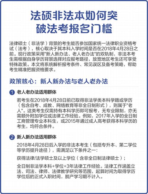 - “全日制”要求:通常要求是全日制的法律硕士学历,对于非全日制(如在职)的法律硕士,各省市的司法行政机关在审核时可能会有细微差别,但近年来政策趋于放宽,很多地区也认可非全日制法硕的报考资格,最稳妥的做法是咨询意向报名地司法行政机关。