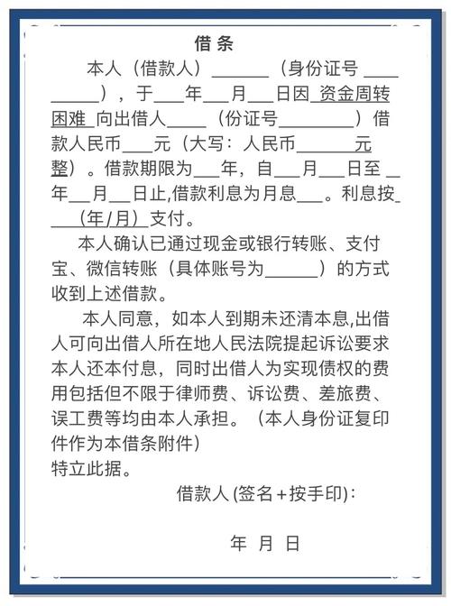 - 内容为王: 无论形式如何,借条的核心内容(借贷双方、金额、利息、期限等)必须清晰、完整、无歧义。