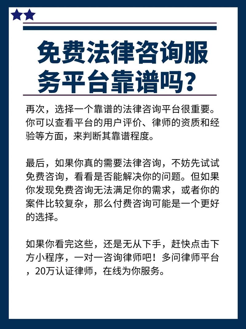 如果您需要免费、权威的法律咨询,首选“12348 中国法律服务网”和您所在地的“法律援助中心”,如果您只是想快速了解一些基础信息,可以尝试找法网、华律网等平台,但请注意甄别。