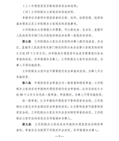 - 设立了“国家安全”的考量因素,包括对国防工业基础的影响、对关键技术(如国防或情报相关技术)的控制等。